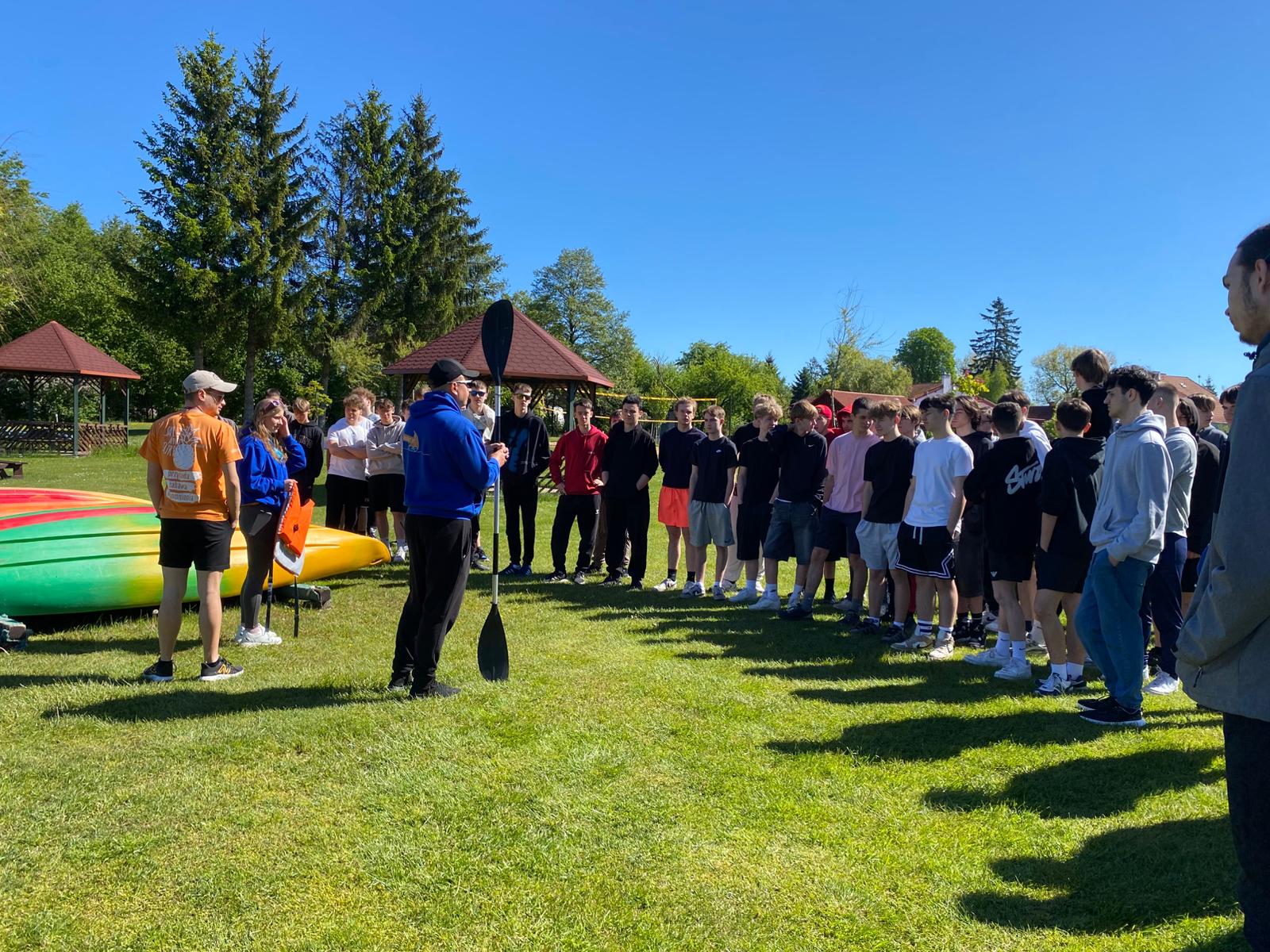Pogoda dopisała, więc mogliśmy w pełni korzystać z uroków natury. Uczniowie uczyli się podstaw kajakarstwa, pływali na rowerkach wodnych, grali w dynamiczny Archer Tag oraz wzięli udział w grach integracyjnych „Hydraulik” i „Mafia”. Nie zabrakło też czasu na relaks na plaży, a dzień zakończyliśmy meczem piłki nożnej.